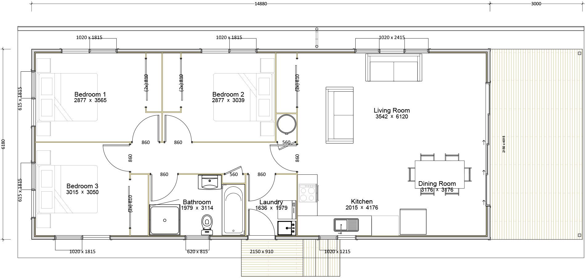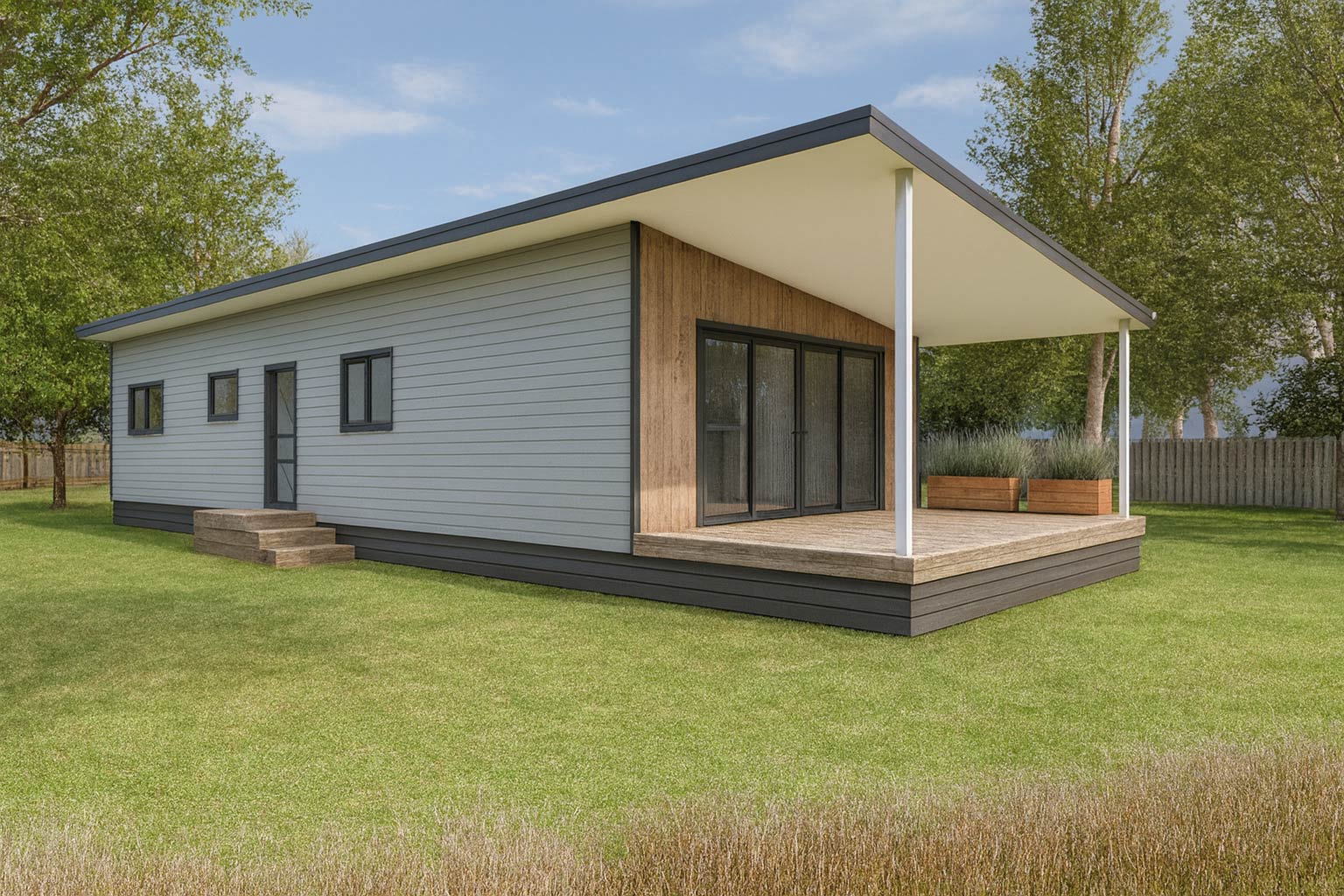 The Kiwi is a practical and stylish 92 sqm transportable home, ideal for families, couples, or those looking for a modern secondary dwelling. With its long, open layout and full-width covered deck, this plan captures the essence of relaxed indoor, outdoor Northland living.