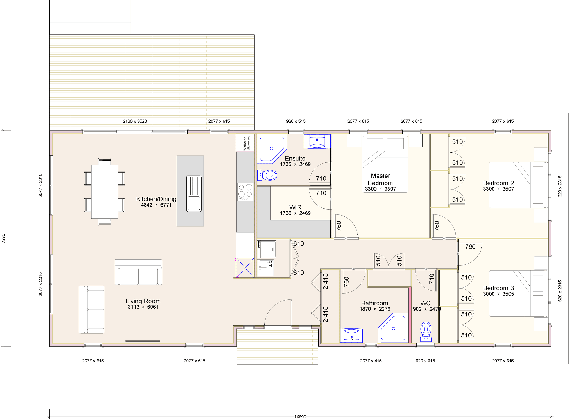 The Pukenui is a well-balanced 121.5 sqm transportable home offering a blend of comfort, functionality, and style. Designed for growing families or couples who love to entertain, it features an expansive open-plan kitchen, dining, and living space that connects seamlessly to outdoor decking, ideal for enjoying Northland’s warm climate and relaxed lifestyle.